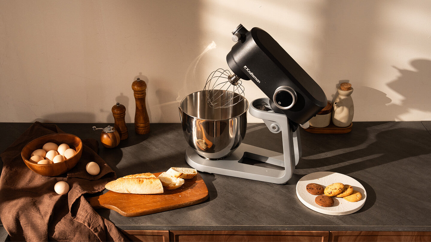 Kraftsman KM50 is the first stand mixer to house the motor, gearbox and PCB all in the head, unlocking full